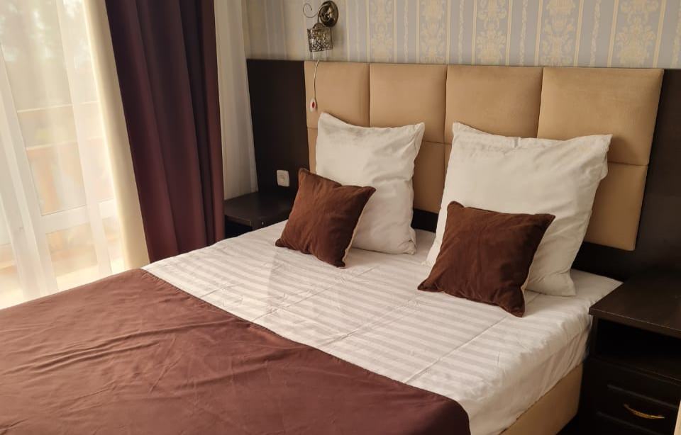 Четырехэтажный корпус отеля разместился всего в 100 метрах от моря. Отель предлагает гостям двухместные комфортабельные номера. В каждом номере есть санузел с душем, кондиционер, холодильник и телевизор с плоским экраном.